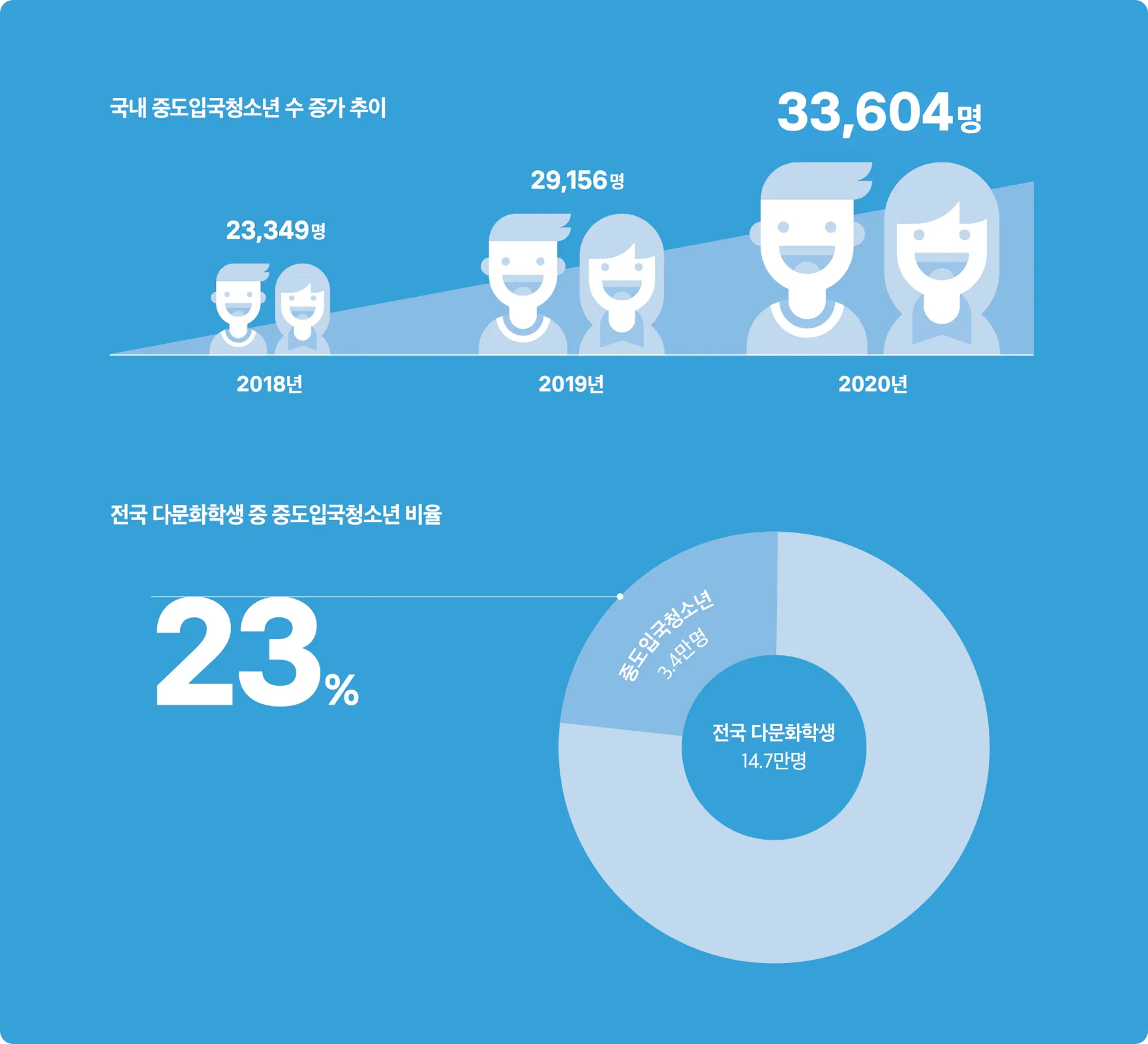 이주배경학생이 급증하고 있는 최근, 국적을 망라하고 중도입국하는 학생들이 늘어나고 있습니다.