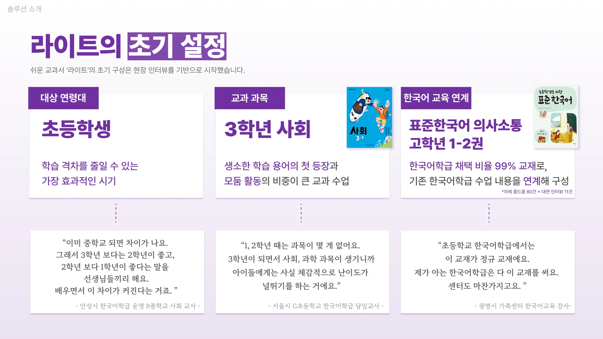 솔루션 적용 범위가 사회과목으로 한정, 타 교과에는 일반화 불가