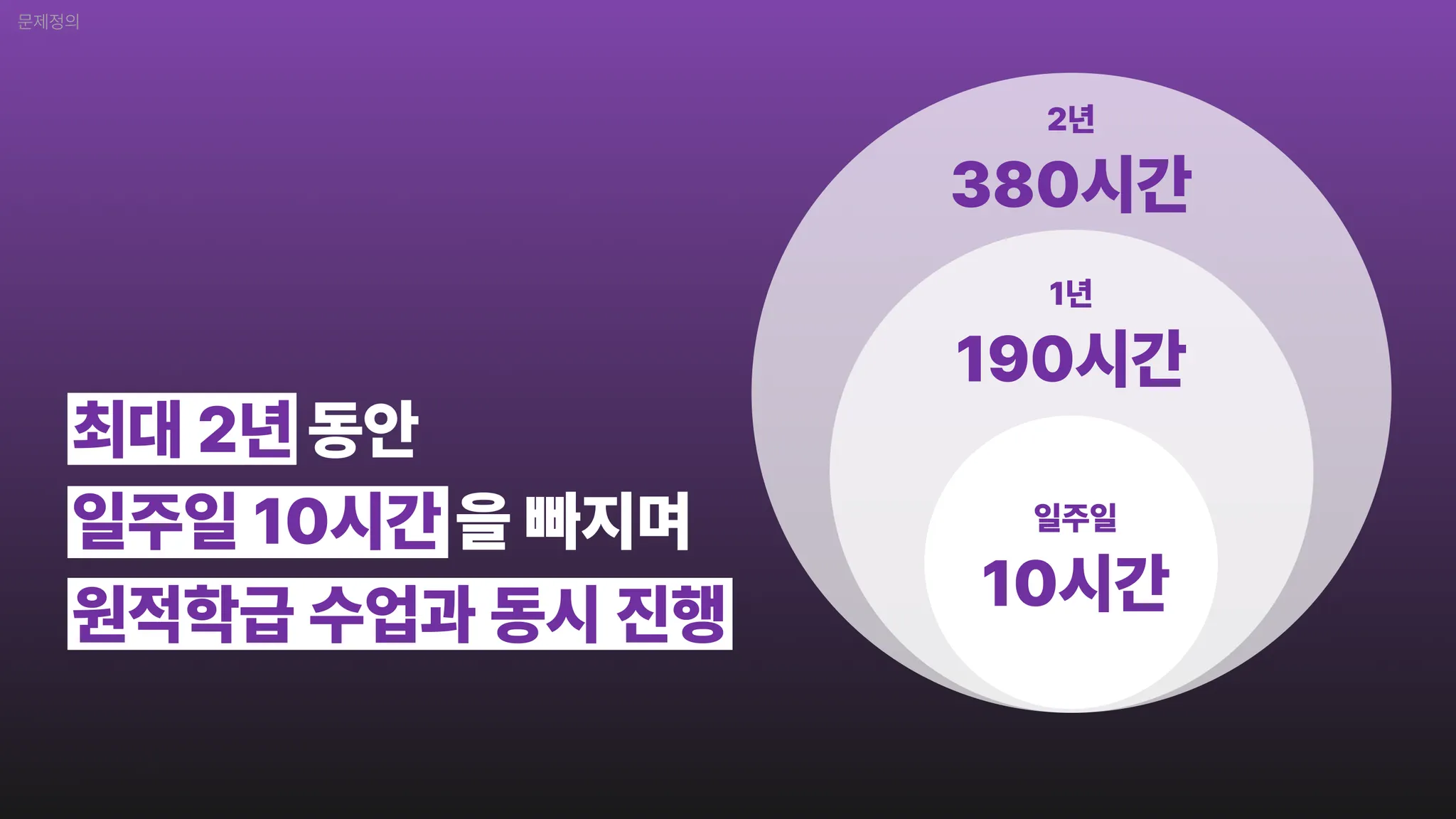 일주일은 10시간에 불과해 보일 수 있지만, 한 달이면 40시간, 한 학기면 190시간이 됩니다.
