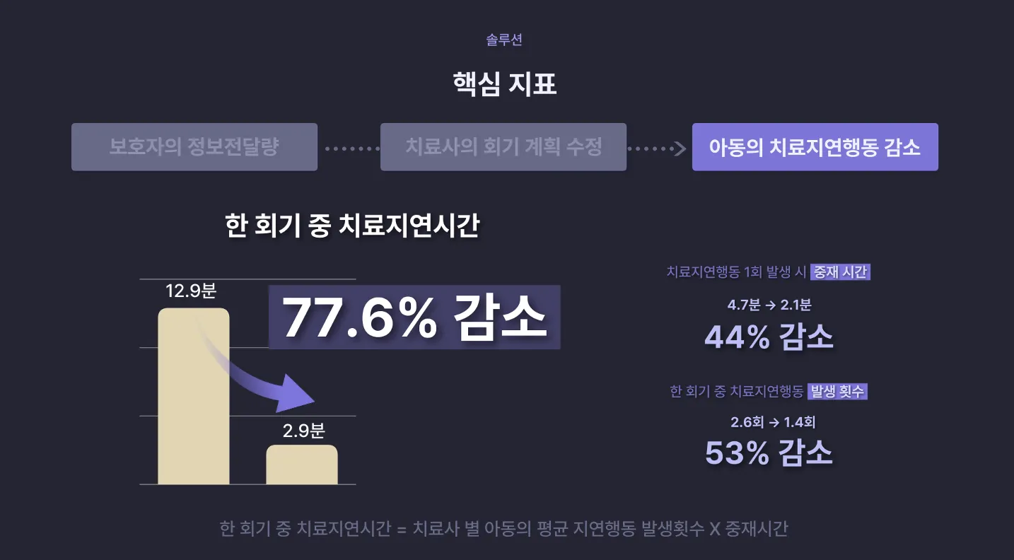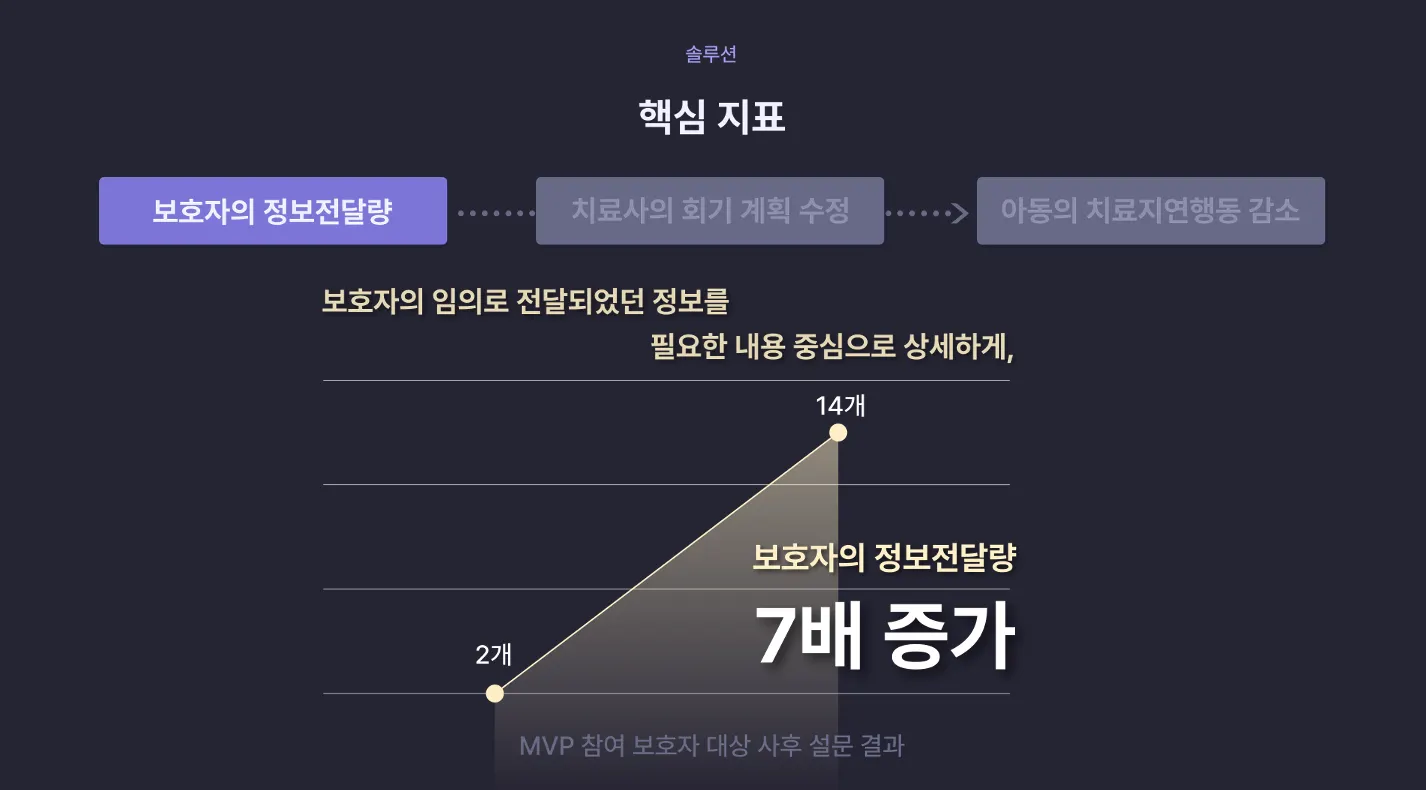 외에도, 치료사에게만 전달되던 리포트가 보호자에게도 전달되며 일종의 기록이 되도록 운영 형태를 바꾸거나 솔루션의 목적 및 정당성을 설명하기 위한 카드뉴스를 제작하는 등의 노력을 통해 보호자의 사용 의사를 높이기도 했다.