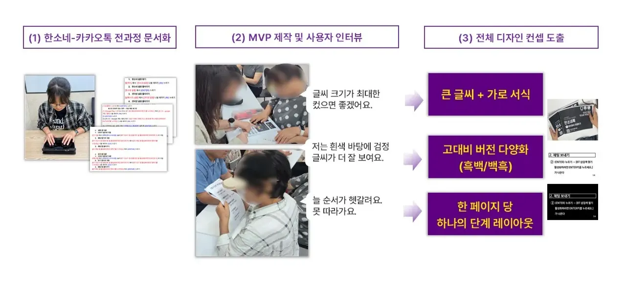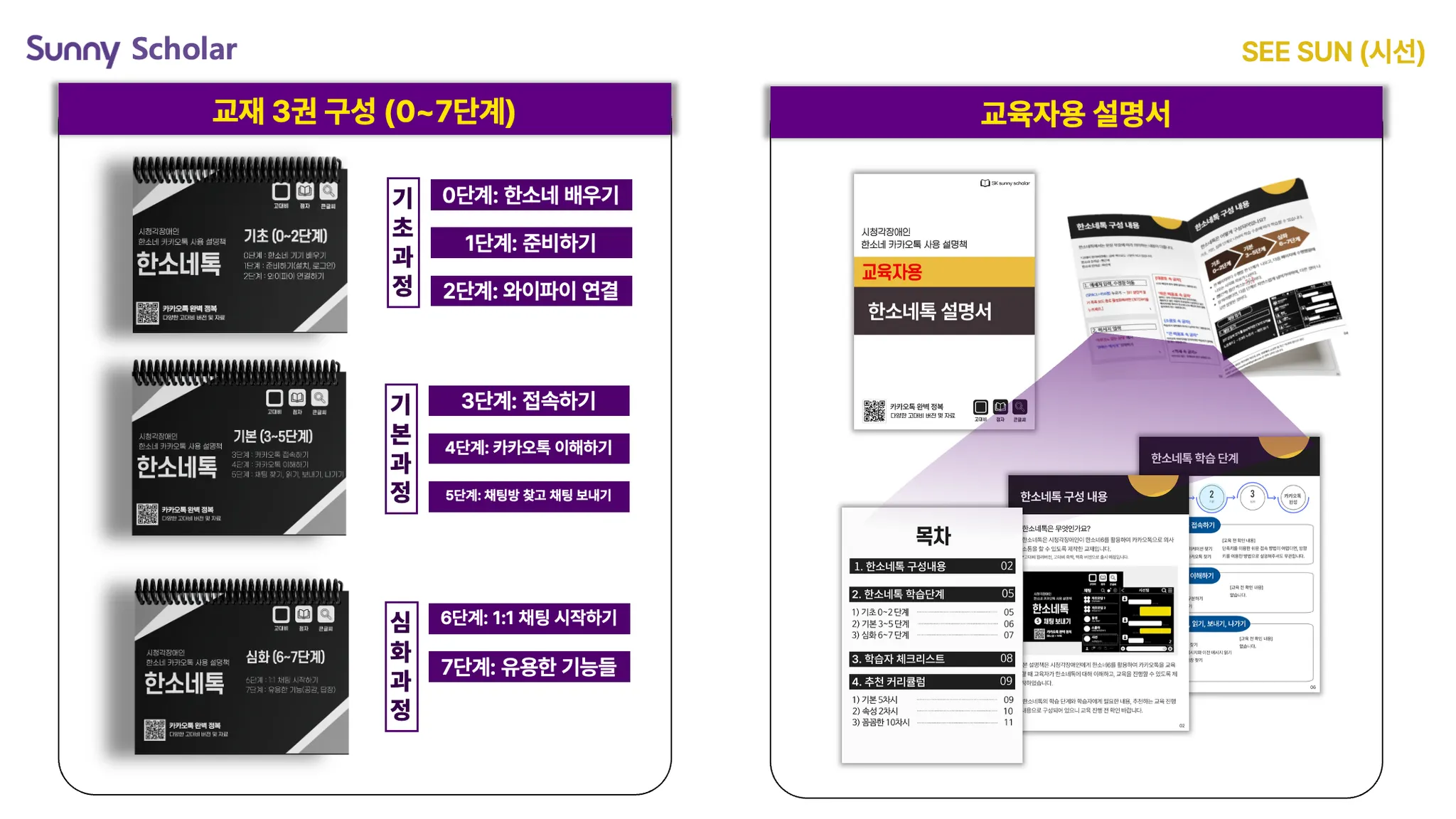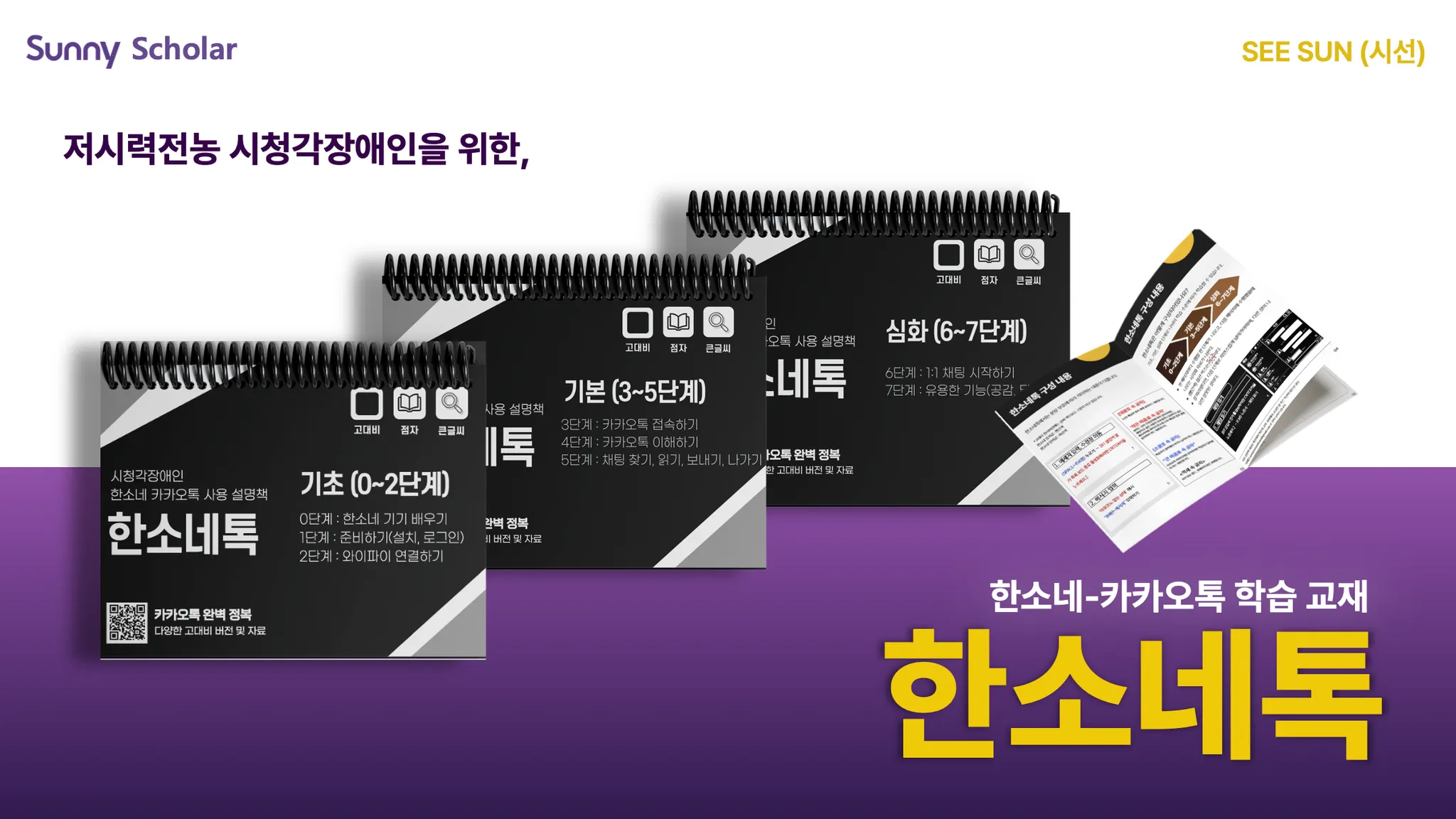 시선의 이번 여정은 시청각장애인, 특히 저시력전농 유형의 시청각장애인이 한소네로 카카오톡을 활용하는 과정에서 겪는 교육적 어려움을 해결하기 위해 교재와 교육자 매뉴얼을 개발한 첫 시도입니다.